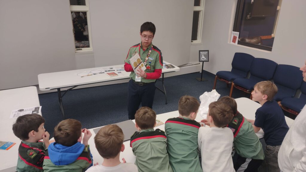 At each regular troop meeting, grade school aged boys work on skills in 7 areas we call “branches”. We are often working on more than one branch at a time. All 7 branches are covered each year and, as boys grow older, wiser, and more mature, their understanding and mastery of these skills improves. Recognition is earned for completing each branch, with a special award for completing all 7.
